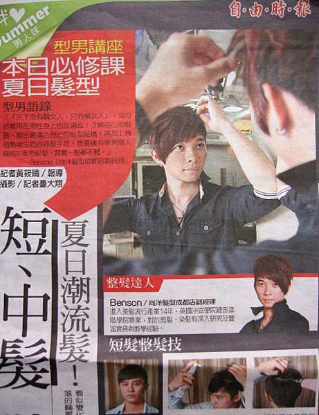 2010夏日潮男流行髮型~尚洋BENSON~受邀自由時報專欄